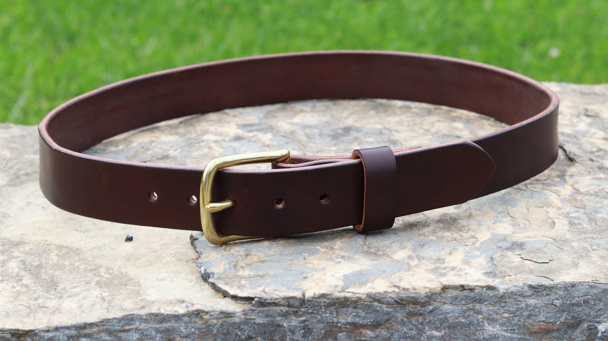 Dark brown Bridle Leather belt brass buckle
